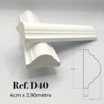 Moulures décoratives en HDPS conçues pour une finition intérieure élégante. Leur surface lisse permet une application rapide de la peinture, au pinceau ou au pistolet. Léger mais résistant, ce matériau facilite la pose en plafond ou mur.